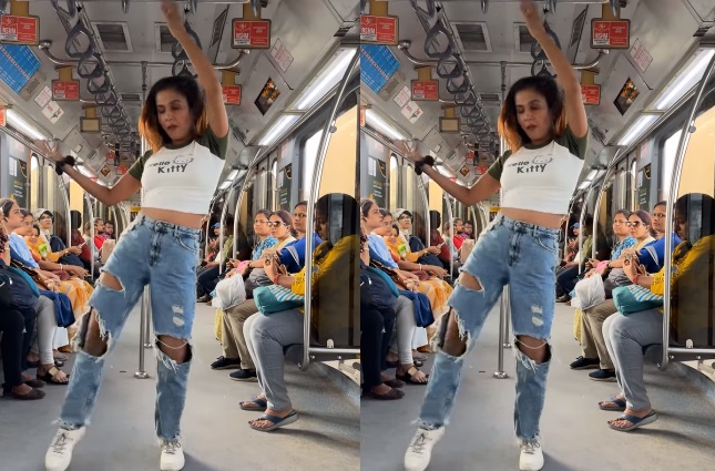 दिल्ली मेट्रो में फटी जींस पहनकर डांस करती लड़की ने मचाया बवाल