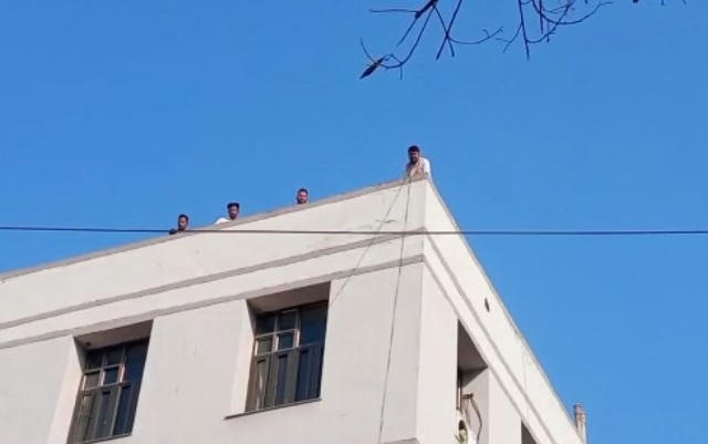 आंदोलन के बीच पेट्रोल लेकर कॉलेज की छत पर चढ़े छात्र, दी आत्मदाह की चेतावनी