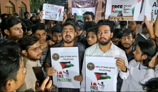 रविवार की देर शाम AMU के सैकड़ों छात्र फिलिस्तीन के समर्थन में प्रदर्शन करते हुए सड़कों पर उतर आए, इस दौरान छात्रों ने अपने हाथों में We Stand Palestine और AMU Stand Palestine के साथ अलग अलग तरह के पोस्टर बैनर लेकर जमकर नारेबाजी करते हुए नजर आए। मीडिया से बात करते हुए प्रदर्शन करते हुए एएमयू के छात्रों ने कहा कि जिस तरह इजराइल द्वारा फिलिस्तीन पर हमले किए जा रहे हैं, यह बिल्कुल सही नहीं है। उन्होने कहा कि जब यूक्रेन पर हमला होता है तो देश और दुनिया यूक्रेन के समर्थन में आ जाती है लेकिन अब फिलिस्तीन पर इस वक्त संकट का समय है तो सभी राजनेता और अन्य समाज का ढिंढोरा पीटने वाले लोग चुप्पी साधे बैठे हुए हैं। वे बताते हैं कि आज फिलिस्तीन संकट में है, ऐसे में एएमयू और एएमयू के सभी छात्र फिलिस्तीन के साथ खड़े हुए हैं और साथ ही उनके लिए दुआ भी कर रहे है।