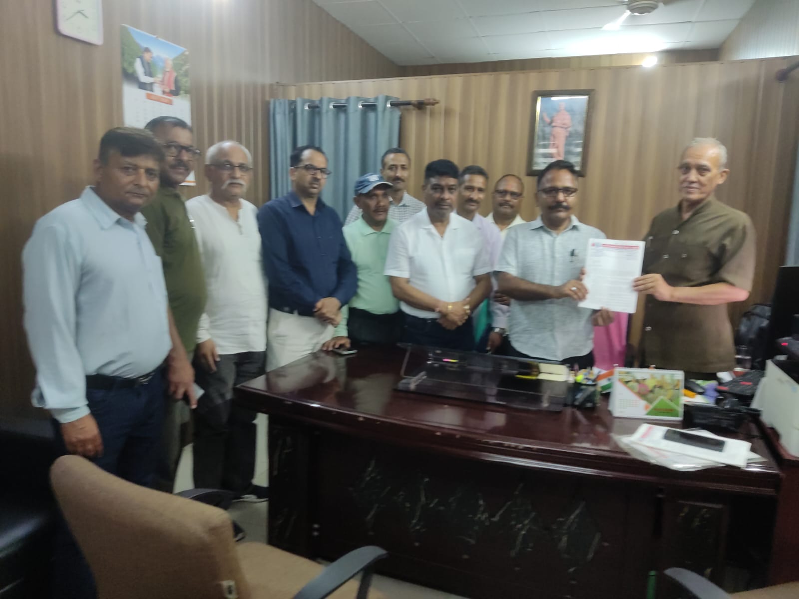 देहरादून : राज्य निगम कर्मचारी अधिकारी महासंघ ने पूर्व निर्धारित कार्यक्रम के अनुसार सचिवालय में मुख्य सचिव को उनके स्टाफ आफिसर श्री ललित मोहन रयाल के माध्यम से ज्ञापन प्रस्तुत किया गया। महासंघ द्वारा दिये गये मांग पत्र में 10 वर्षों से लगातार दैनिक/ संविदा/विशेष श्रेणी/पी टी सी/आउटसोर्स कार्य करने वाले कार्मिकौ को माननीय न्यायलय के निर्देशों के अनुसार नियमितीकरण करने के साथ माननीय मुख्य मंत्री जी की बैठक में हुए निर्णय अनुसार राज्य कार्मिकौ की भांति सार्वजनिक निगम / निकाय/उपक्रम के कार्मिक के आदेश एक साथ किये जाए। जैसे महंगाई भत्ता, मकान किराया भत्ता, पद्दोनति में शिथिलीकरण, 1900 रू ग्रेड वेतन के स्थान पर 2000 ग्रेड वेतन, वेतन विसंगति समिति की रिपोर्ट ओपन करना आदि , विषयौ पर उधोग विभाग द्वारा अनावश्यक विलम्ब किया जाता।