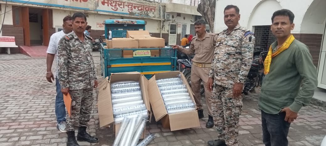 मथुरा। नगर निगम मथुरा वृंदावन को अतिक्रमण मुक्त रखने हेतु नगर आयुक्त जग प्रवेश के दिशा निर्देशन में चलाए जा रहे अभियान के अंतर्गत आज प्रवर्तन टीम द्वारा मथुरा वृंदावन में विभिन्न स्थानों पर कार्यवाही की गई। जिसमें प्रेम मन्दिर से छटीकरा तक अतिक्रमण व पोलीथिन के विरुद्ध अभियान चलाया गया और उनसे 5000 का जुर्माना वसूला गया। इसी दौरान वहां से गुजर रहे एक टैम्पो भी चैक किया गया जिसमें प्रतिबंधित प्लास्टिक के 2 कार्टून गिलास के पाये गये जिस पर टैम्पो को नगर निगम आफिस वृन्दावन में पहुंचाया गया।