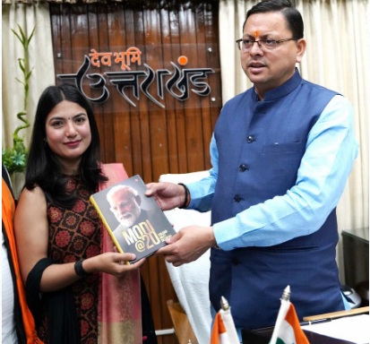 मुख्यमंत्री ने इस अवसर पर दिव्या नेगी को राज्य सरकार की उपलब्धि पर आधारित पुस्तक ‘एक साल नई मिसाल’ एवं ‘मोदी @20 ड्रीम मीट डिलीवरी’ पुस्तक भेंट की।
