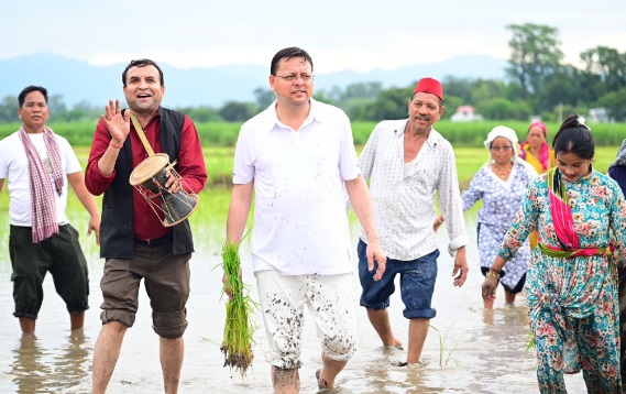 देहरादून: खटीमा के नगरा तराई क्षेत्र में उत्तराखंड के मुख्यमंत्री पुष्कर सिंह धामी ने शनिवार को अपने खेत में धान की रोपाई कर किसानों के परिश्रम, त्याग और समर्पण को नमन किया। उन्होंने कहा कि खेतों में उतरकर पुराने दिनों की यादें ताजा हो गईं। मुख्यमंत्री ने कहा कि “अन्नदाता न केवल हमारी अर्थव्यवस्था की रीढ़ हैं, बल्कि वे हमारी संस्कृति और परंपराओं के संवाहक भी हैं।”