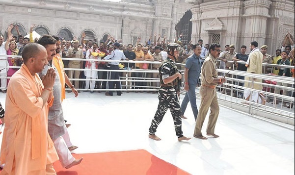 मुख्यमंत्री के रूप में पूरे दिन ‘कर्म पथ’ से गुज़रने के बाद मुख्यमंत्री योगी आदित्यनाथ शाम को ‘धर्म पथ’ भी पहुंचे। मुख्यमंत्री योगी आदित्यनाथ ने काशी विश्वनाथ मंदिर में भक्तों का अभिवादन किया। वहीं सीएम को देखकर बाबा के भक्तों ने भी हर-हर महादेव का जयकारा लगाया। काल भैरव मंदिर में दर्शन-पूजन के उपरांत मुख्यमंत्री ने रास्ते में बच्चों को टॉफी व चॉकलेट बांटा। सीएम ने बच्चों से उनकी पढ़ाई के बारे में भी पूछा। मंदिर के पास ही मां की गोद में नवजात को देखकर रुके सीएम ने उसे आशीर्वाद भी दिया।