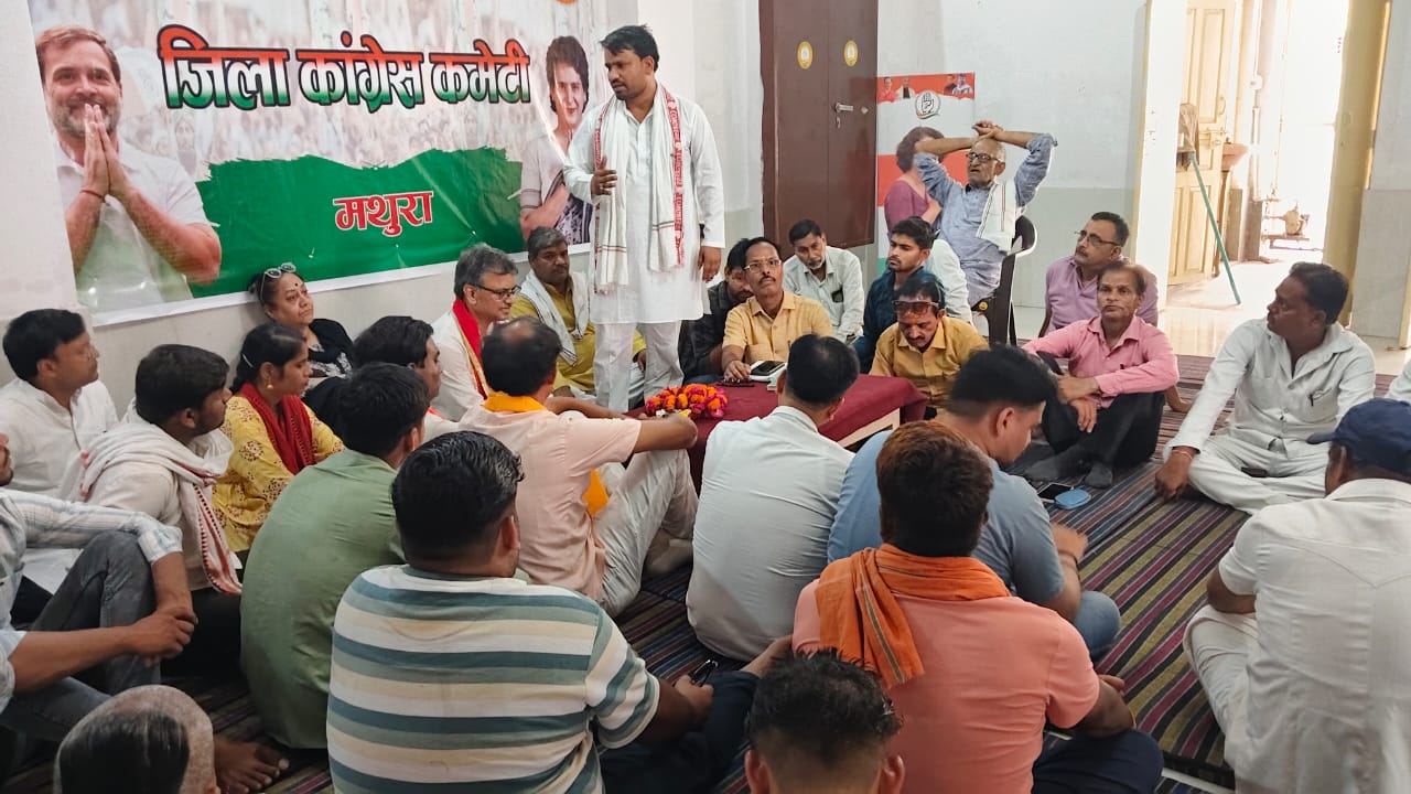 इस बैठक में उत्तर प्रदेश कांग्रेस कमेटी से आए फ्रंटल संगठनों के कोऑर्डिनेटर राकेश भाटी ने भाजपा की जन विरोधी नीतियों के खिलाफ पार्टी द्वारा संघर्ष का बिगुल फूटने का ऐलान करते हुए कहा कि उत्तर प्रदेश में जंगल राज बलात्कार हत्या आदि की घटनाएं चरम सीमा पर हैं प्रदेश सरकार हर मोड़ पर विफल हो चुकी है इसलिए अपने नंबर बनाने के लिए बाबा अपने संविधान विरोधी बातें कर रहे हैं! बैठक की अध्यक्षता प्रेम शंकर शर्मा ने की एवं संचालन महासचिव वैद्य मनोज गौड़ ने किया।