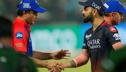 नई दिल्ली : दिल्ली कैपिटल्स और रॉयल चैलेंजर्स बैंगलोर के बीच मुकाबले के बाद स्क्रीन पर एक ऐसा दृश्य सामने आया, जिसका सभी क्रिकेट फैंस को बेसब्री से इंतजार था. मैच के बाद खिलाड़ियों और टीम ऑफिशियल्स के हैंडशेक के दौरान दिल्ली कैपिटल्स के क्रिकेट डायरेक्टर सौरव गांगुली और RCB प्लेयर विराट कोहली का आमना-सामना हुआ. हालांकि इस बार यह दोनों दिग्गज बेहद सरलता के साथ एक-दूजे से मिले. यहां दोनों को हाथ मिलाते हुए भी देखा गया. यह वीडियो अब सोशल मीडिया पर बेहद पसंद किया जा रहा है.