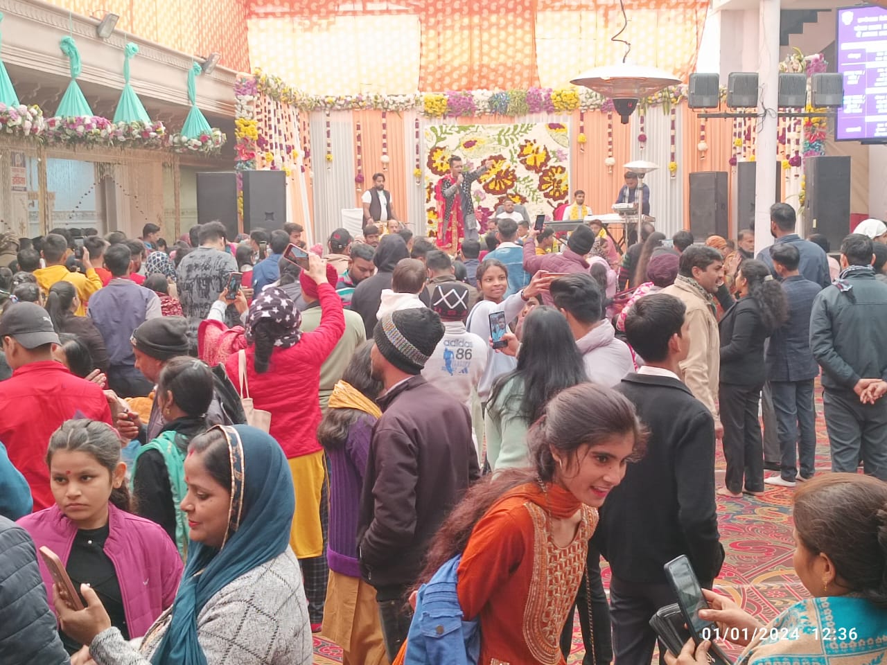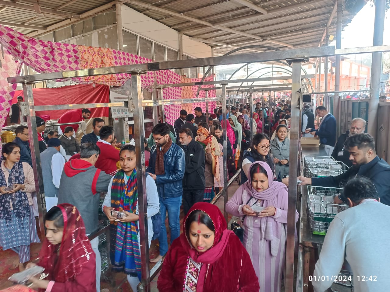 प्रवेश दिया जा रहा है । लाईनों में दर्शन के लिय काफी समय लग रहा है। मंदिर की सुचारू व्यवस्था के बावजूद लाईनों में एक डेढ घंटे का समय लग रहा है। सभी भक्तों को निकासी द्वार पर प्रसाद दिया जा रहा है।
