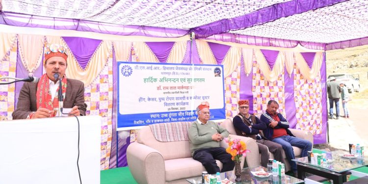 सीएसआईआर-आईएचबीटी, पालमपुर ने 19 सितंबर 2022 को उच्च तुंगता जीवविज्ञान केन्द्र (सेंटर फॉर हाई एल्टीट्यूड बायोलॉजी), रिबलिंग, केलांग, जिला लाहौल और स्पीति में तांदी पंचायत के किसानों को सशक्त बनाने के लिए ” कम्पोस्ट बूस्टर सहित हींग, केसर, पुष्प रोपण सामग्री वितरण” कार्यक्रम का आयोजन किया। डॉ राम लाल मारकंडा, माननीय तकनीकी शिक्षा मंत्री, हिमाचल प्रदेश सरकार इस कार्यक्रम के मुख्य अतिथि थे। श्री शमशेर सिंह, सदस्य आदिवासी सलाहकार समिति, हिमाचल प्रदेश के साथ-साथ राज्य सरकार के विभिन्न विभागों के अधिकारी भी इस अवसर पर उनके साथ उपस्थित थे। कार्यक्रम में टांडी पंचायत के कई आदिवासी किसानों, महिलाओं, बेरोजगार युवाओं ने भाग लिया। इसके अलावा मार्बल व मलंग गांवों के प्रधान व महिला मंडलों के प्रतिनिधि भी कार्यक्रम के दौरान उपस्थित रहे।