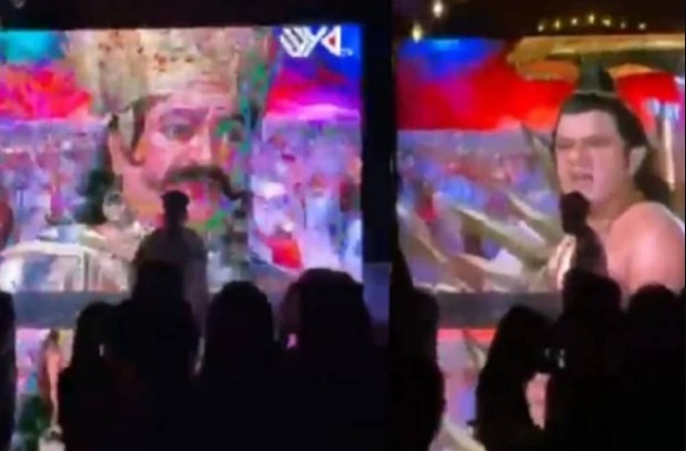दरअसल गार्डन गैलेरिया मॉल के ‘लॉर्ड ऑफ ड्रिंक्स’ बार में इस तरह राम-रावण युद्ध से जुड़े संवाद को डब करके चलाया जा रहा है। वायरल वीडियो में साफ देखा जा सकता है कि स्क्रीन पर राम व रावण के बीच संवाद का एक प्रसंग चल रहा है, जबकि स्टेज पर लोग शराब और सिगरेट के गुलछर्रे उड़ाकर ठुमके लगा रहे हैं। सोशल मीडिया पर यह वीडियो तेजी से वायरल हो रहा है।