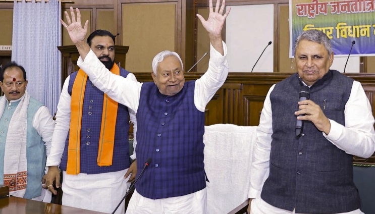 नीतीश कुमार 10वीं बार बिहार के मुख्यमंत्री बने हैं. बीते दिन उन्होंने शपथ ली थी. नीतीश के साथ सम्राट चौधरी और विजय सिन्हा ने डिप्टी सीएम की शपथ ली, जिन्हें मिलाकर नीतीश की नई सरकार में कुल 27 मंत्री शामिल हुए. इसमेंसामान्य वर्ग के 8, राजपूत- 4 , भूमिहार 2, ब्राह्मण- 1, कायस्थ-1 है. पिछड़ी जातियों से 9 मंत्री हैं, जिनमें कुशवाहा 3, कुर्मी 2, वैश्य- 2और यादव -2हैं. अति पिछड़ी जातियों के 3 मंत्री बने हैं.इनमें मल्लाह- 2औरईबीसी 1 है. 5दलितों को भी मंत्री बनाया गया है. जबकि मुस्लिम मंत्रियों की संख्या 1 है.