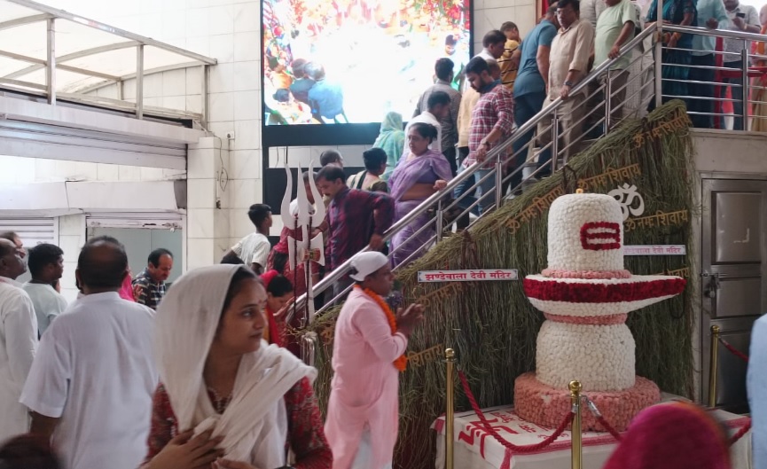 झण्डेवाला देवी मन्दिर में भक्तों ने भगवान शंकर का किया रूद्राभिषेक