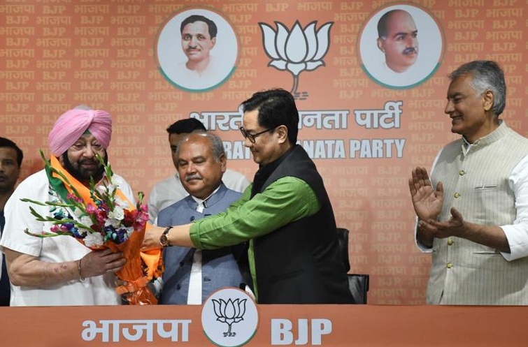 दिल्ली : पंजाब के पूर्व मुख्यमंत्री और पंजाब लोक कांग्रेस (पीएलसी) के प्रमुख अमरिंदर सिंह भारतीय जनता पार्टी (भाजपा) के वरिष्ठ नेताओं की मौजूदगी में सोमवार को यहां पार्टी में शामिल होंगे। पंजाब के पूर्व मुख्यमंत्री और पंजाब लोक कांग्रेस (पीएलसी) के प्रमुख अमरिंदर सिंह ने भारतीय जनता पार्टी (भाजपा) में शामिल होने से पहले सोमवार को पार्टी के राष्ट्रीय अध्यक्ष जे पी नड्डा से मुलाकात की। सूत्रों से मिली जानकारी के मुताबिक, भाजपा के वरिष्ठ नेताओं की मौजूदगी में सिंह यहां ना सिर्फ पार्टी में शामिल होंगे बल्कि अपनी नवगठित पार्टी पीएलसी का केंद्र की सत्ताधारी पार्टी में विलय भी करेंगे। वहीं बड़ा सवाल यह है कि अमरिंदर सिंह के पार्टी में शामिल होने से भाजपा को क्या फायदा होगा। क्या भाजपा एक तीर से दो निशाने साधने की तैयारी में है।