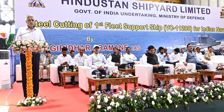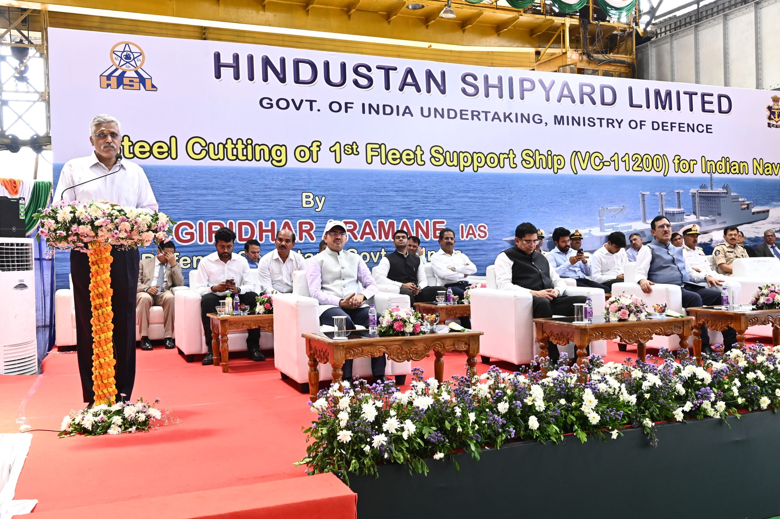 नई दिल्ली। हिंदुस्तान शिपयार्ड लिमिटेड (एचएसएल) ने 10 अप्रैल 2024 को श्री गिरिधर अरमाने, आईएएस, रक्षा सचिव के शुभ हाथों से भारतीय नौसेना के लिए फ्लीट सपोर्ट जहाजों की पहली स्टील कटिंग के साथ एक महत्वपूर्ण उपलब्धि हासिल की। उस दिन बाद में, रक्षा सचिव ने यार्ड की क्षमता और क्षमता बढ़ाने के लिए स्लिपवे के विस्तार और प्रमुख बुनियादी ढांचे के आधुनिकीकरण की आधारशिला भी रखी।