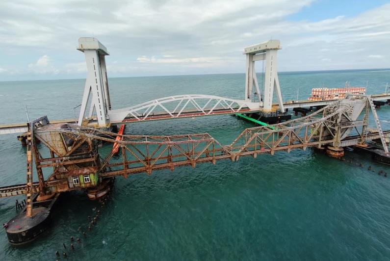 - नया पंबन ब्रिज लगभग 2.05 किमी लंबा है और भारत का पहला वर्टिकल लिफ्ट रेलवे ब्रिज है।