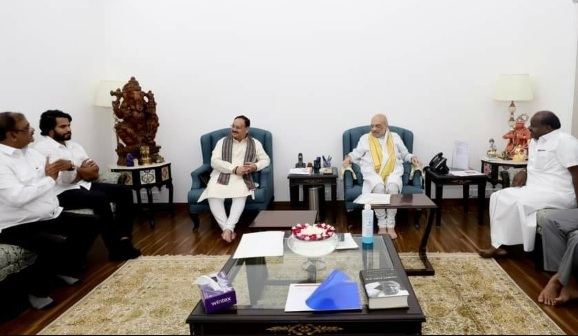 दिल्ली में केंद्रीय गृह मंत्री अमित शाह से मुलाकात के बाद कर्नाटक के पूर्व मुख्यमंत्री और जेडीएस नेता एच.डी. कुमारस्वामी ने कहा, ‘आज हमने औपचारिक रूप से भाजपा के साथ हाथ मिलाने और NDA का हिस्सा बनने पर चर्चा की। हमने औपचारिक रूप से प्रारंभिक मुद्दों पर चर्चा की है। हमारी ओर से कोई मांग नहीं है।’