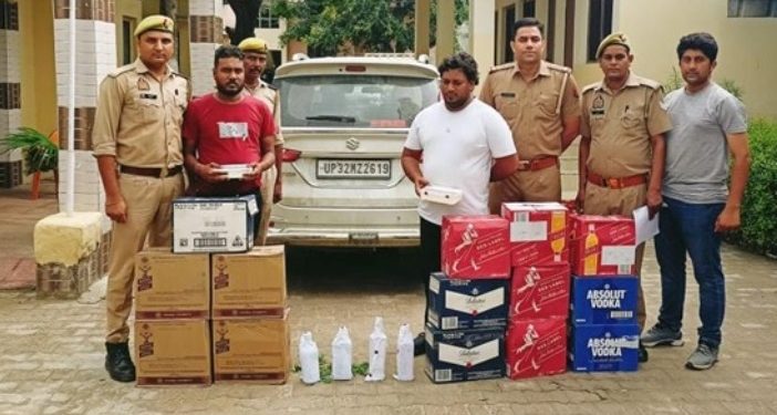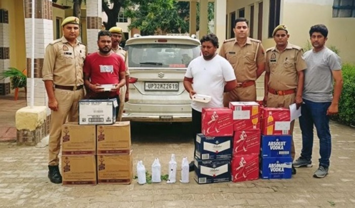 3 पेटी बेलेन्टाइन (36 बोतल) जिसमें प्रत्येक बोतल पर बलैण्डेड स्कौच व्हिस्की, 2 पेटी एव्सोल्युट वोदका (24 बोतल) कुल 14 पेटी (168 बोतल) अबैध अंग्रेजी शराब हरियाणा मार्का, दो एण्ड्रायड फोन (वीवो रंग पीला व ओप्पो रंग नीला) व तस्करी में प्रयुक्त वाहन कार अर्टिगा सफेद रजिस्ट्रेशन संख्या UP 32 MZ 2619 सहित गिरफ्तार किया गया।