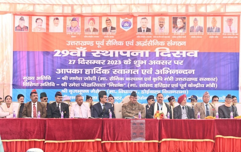 इस अवसर पर सैनिक कल्याण मंत्री गणेश जोशी सभी पूर्व सैनिकों तथा उनके परिवार जनों को स्थापना दिवस की बधाई एवं शुभकामनाएं देते हुए कहा उन्होंने कहा देश का प्रधानमंत्री नरेंद्र मोदी जवानों के साथ दीपावली मनाते हैं। यह इस बात का प्रतीक है कि सैनिकों नरेंद्र मोदी सरकार सैनिकों के सम्मान ओर उनके आश्रितों के कल्याण के लिए कितनी गंभीर है। उन्होंने कहा प्रधानमंत्री नरेंद्र मोदी के पद चिन्हों पर प्रदेश में मुख्यमंत्री पुष्कर सिंह धामी के नेतृत्व में सैनिक और उनके आश्रितों के कल्याण के लिए अनेकों जन कल्याणकारी योजनाएं संचालित की जा रही है। सैनिक कल्याण मंत्री जोशी ने कहा वीरता चक्र श्रृंखला से अलंकृत सैनिकों और वीर नारियों को उत्तराखंड परिवहन निगम की बसों में निःशुल्क यात्रा सुविधा प्रदान की जा रही है। जिसके लिए मंत्री जोशी ने मुख्यमंत्री का आभार भी व्यक्त किया।