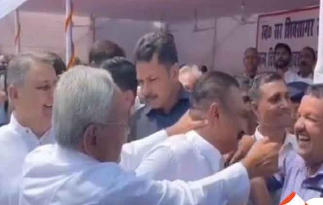 पटना : बिहार के मुख्यमंत्री नीतीश कुमार का एक ऐसा वीडियो सामने आया है, जिसमें वो अपने ही मंत्री अशोक चौधरी की गर्दन पकड़ कर एक पत्रकार के सिर से टकराते हुए नजर आ रहे हैं। पहली नजर में जिसने भी यह वीडियो देखा, वो हैरान है कि मुख्यमंत्री ने आखिर ऐसा क्यों किया? दरअसल, नीतीश कुमार की नजर टीका लगाए हुए एक पत्रकार पर पड़ी तो उन्होंने पीछे पलटकर देखा और अशोक चौधरी को अपने पास बुलाया और गर्दन पकड़ पत्रकार के पास ले जाकर खड़ा कर दिया। नीतीश कुमार की इस हरकत से मौके पर मौजूद पत्रकार ही नहीं बल्कि नेता भी हैरान रह गये। यह घटना राजधानी पटना के गांधी मैदान की है।