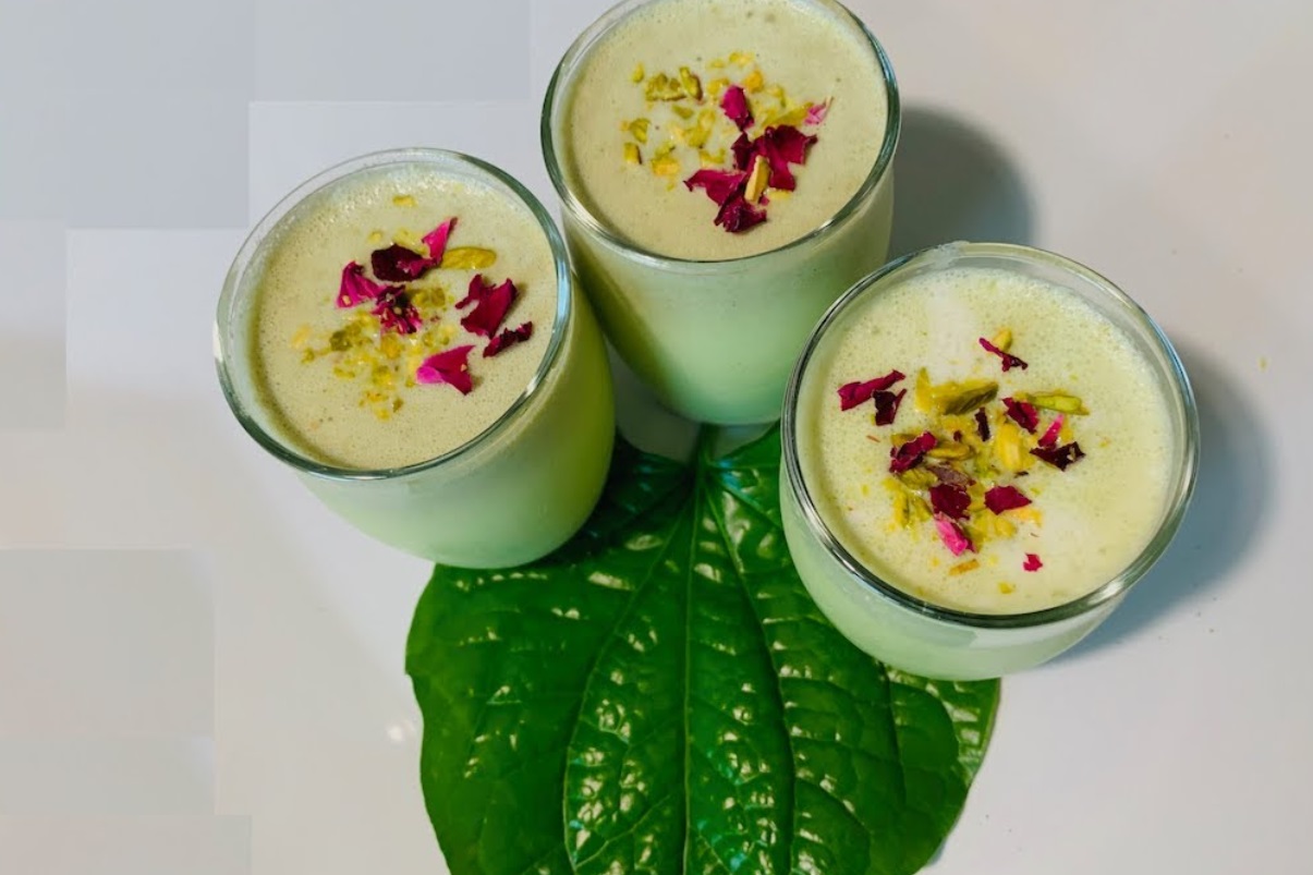 पान के पत्ते 6-7 टुकड़े, सौंफ 2 बड़े चम्मच, नारियल बुरादा 2 बड़े चम्मच, इलायची पाउडर छोटी चम्मच से अधिक, आइस क्यूब्स 3-4, गुलाब की पंखुड़ियां 2 बड़े चम्मच, गुलकंद 2 बड़े चम्मच, हरा फूड कलर, चीनी पाउडर आधा कप, पान के पत्तों का पेस्ट 4 बड़े चम्मच, चीनी पाउडर, दूध, ताजी क्रीम, पिस्ता बारीक कटा हुआ, केसर, सूखी गुलाब की पंखुड़ियां