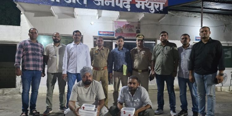 मथुरा: थाना जैत पुलिस एवं एंटी नारकोटिक्स टास्क फोर्स आगरा जोन आगरा की संयुक्त कार्यवाही में मुखबिर की सूचना पर चैकिंग के दौरान दिनांक 17.07.2025 को नशीले पदार्थों की तस्करी करने वाले 02 अभियुक्तगण गुरुमैल सिंह, पुत्र-शेर सिंह निवासी ग्राम – सोंटी थाना- लाडवा, जिला-कुरुक्षेत्र हरियाणा और सुल्तान सिंह, पुत्र-जयपाल सिंह, निवासी जोगना खेड़ा, थाना-केयूके, जिला-कुरुक्षेत्र हरियाणा को थाना जैत जनपद मथुरा से 300 मीटर आगे पलवल की तरफ एन एच -19 से गिरफ्तार किया गया।