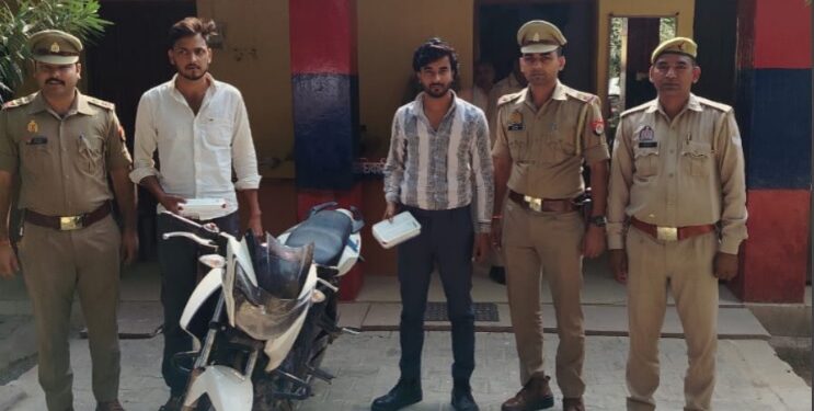 मथुरा : थाना मगोर्रा पुलिस टीम द्वारा जनपद में चोरी की घटनाओं पर रोक लगाने हेतु चलाए जा रहे अभियान के तहत मुखबिर की सूचना पर दो शातिर चोर अनिल पुत्र बादाम सिंह निवासी ग्राम नंगला छिंगा थाना मगोर्रा मथुरा उम्र करीब 22 वर्ष और लवकुश पुत्र मोहरपाल निवासी ग्राम बोरपा थाना मगोर्रा मथुरा उम्र करीब 22 वर्ष को लालपुर नहर पुलिया से सौख की तरफ से 01 चोरी की मोटर साइकिल अपाचे रंग सफेद एवं 8800 रूपये के साथ किया गिरफ्तार किया गया।