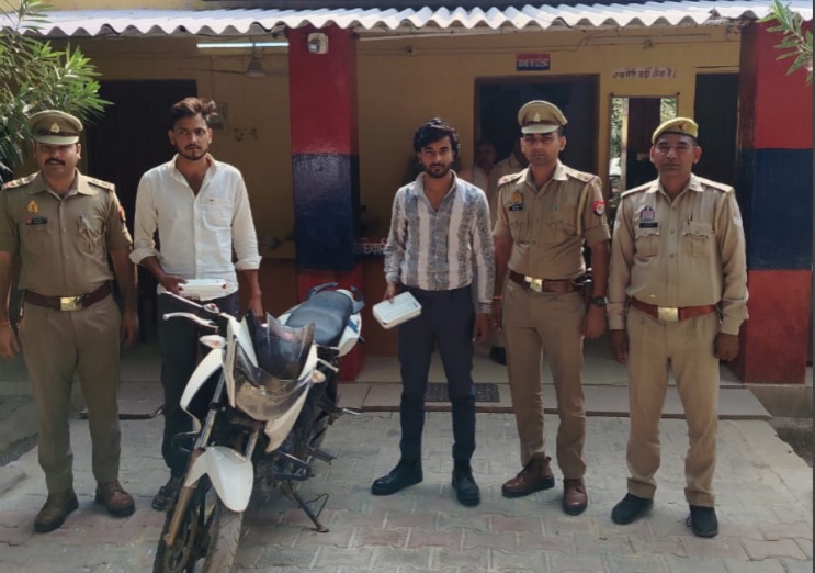 मथुरा : थाना मगोर्रा पुलिस टीम द्वारा जनपद में चोरी की घटनाओं पर रोक लगाने हेतु चलाए जा रहे अभियान के तहत मुखबिर की सूचना पर दो शातिर चोर अनिल पुत्र बादाम सिंह निवासी ग्राम नंगला छिंगा थाना मगोर्रा मथुरा उम्र करीब 22 वर्ष और लवकुश पुत्र मोहरपाल निवासी ग्राम बोरपा थाना मगोर्रा मथुरा उम्र करीब 22 वर्ष को लालपुर नहर पुलिया से सौख की तरफ से 01 चोरी की मोटर साइकिल अपाचे रंग सफेद एवं 8800 रूपये के साथ किया गिरफ्तार किया गया।