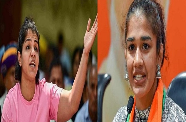 नई दिल्ली। भारत की ओलंपिक पदक विजेता साक्षी मलिक और उनके पति सत्यव्रत कादियान द्वारा जारी एक वीडियो में यह दावा किए जाने के बाद कि प्रदर्शन की इजाजत भाजपा के दो नेताओं ने दिलाई थी। इस दावे के बाद पहवान और भाजपा नेता बबीता फोगाट और साक्षी मलिक बीच ट्विटर पर ही बयानों का दंगल छिड़ गया है। साक्षी और सत्यव्रत के दावे पर अपनी सफाई देते हुए भाजपा नेता और अंतरराष्ट्रीय पहलवान बबीता फोगाट ने पलटवार किया है। उन्होंने पहलवानों पर कांग्रेस के हाथों की कठपुतली बनकर उनके इशारे पर आंदोलन करने का आरोप लगाया। वहीं, साक्षी ने बबीता फोगाट के आरोपों का जवाब देते हुए आरोपों को तंज कसना बताया है।