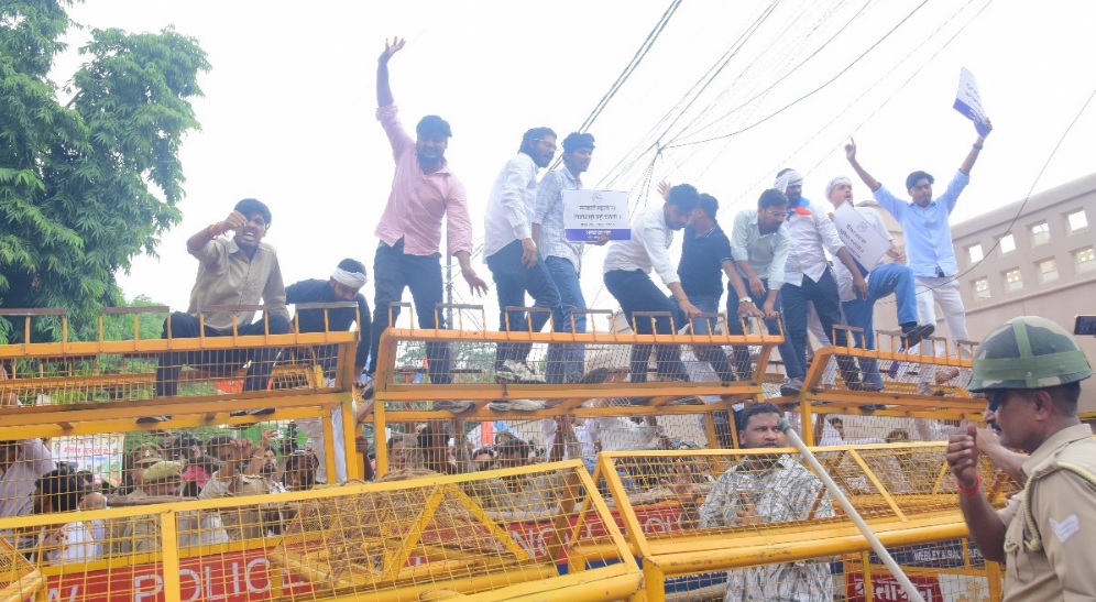 मौके पर उपस्थित पुलिस बल द्वारा कार्यकर्ताओं को रोकने की कोशिश की। आक्रोशित छात्र जब बैरीकेडिंग तोड़कर आगे बढ़े तो एनएसयूआई के कार्यकर्ताओं एवं पुलिस प्रशासन के बीच धक्का-मुक्की वा तीखी नोक-झोंक भी हुई।