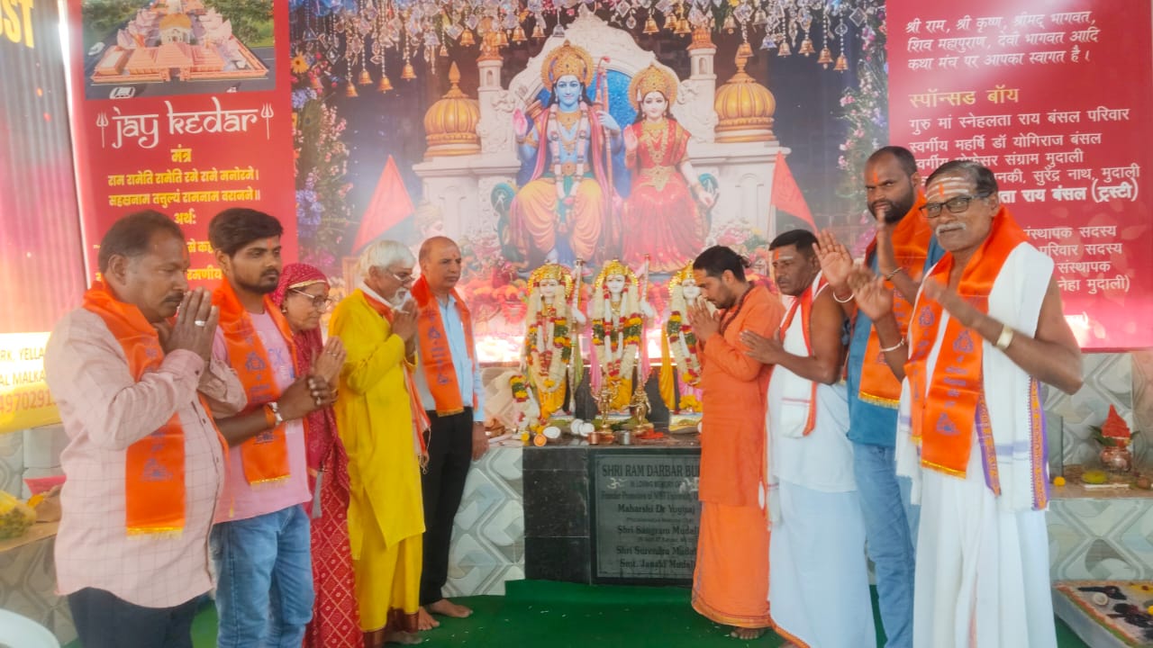 कथा की पूर्णाहुति श्री राम दरबार की आरती, देवी-देवताओं की विदाई और प्रसाद वितरण के साथ संपन्न हुई।इस आयोजन में श्री बलवीर प्रसाद पैनोली, मिथलेश पैनोली, लक्ष्मण जी और सुभाष यादव सहित कई श्रद्धालुओं ने अपनी महत्वपूर्ण सेवाएं दीं।आयोजक चेयरमैन राजर्षी ठाकुर जयपाल नयाल सनातनी ने बताया कि इस 9 दिवसीय कथा में मुख्य यजमान श्री धनराज सोनी परिवार (बंजारा हिल्स) के साथ गुरु मां स्नेहलता राय बंसल, प्रोफेसर गीतिका मुदाली परिवार और बाबूजी गोपाल दास अग्रवाल परिवार का विशेष सहयोग रहा।