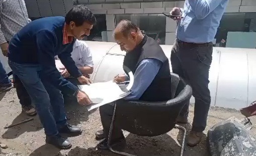 सड़क किनारे फाइलें साइन कर रहे मेयर