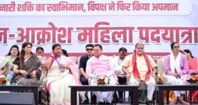मुख्यमंत्री धामी ने कहा कि विपक्ष ने षड्यंत्र करके नारी शक्ति का अधिकार छीनने का काम किया है. उन्होंने कहा देश की नारी, अन्याय के विरुद्ध अवश्य आवाज उठाएगी क्योंकि अब नारी अपने अधिकारों के प्रति सजग हो चुकी है.
