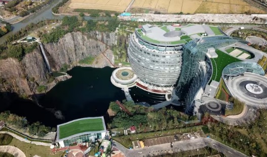 चीन के शंघाई शहर के सोंगजियांग जिले में स्थित इंटरकॉन्टिनेंटल शंघाई वंडरलैंड होटल आर्किटेक्चर और इंजीनियरिंग का एक शानदार उदाहरण है। यह अनोखा होटल एक पुरानी खदान के अंदर बना है, जिसकी वजह से इसे ‘क्वारी होटल’ या ‘खदान होटल’ के नाम से भी जाना जाता है।