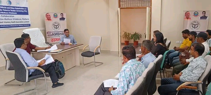 सतीश मुखिया/मथुरा: आज नगर निगम मथुरा-वृन्दावन के भूतेश्वर स्थित कार्यालय के सभागार में तम्बाकू उत्पाद नियंत्रण लाइसेंस उपविधि-2021 के प्रभावी क्रियान्वयन हेतु एक कार्यशाला का आयोजन श्री अनुज कोशिक, सहायक नगर आयुक्त एवं श्री गोपाल गर्ग , नगर स्वास्थ्य अधिकारी की अध्यक्षता में किया गया। हम लोग देखते हैं कि टीवी और सोशल मीडिया में तंबाकू और गुटखा के बड़े-बड़े विज्ञापन आते हैं यह विज्ञापन कोई और नहीं करता हमारे आदर्श हीरो हीरोइन करते हैं जिनकी देखा देखी आज का युवा समाज तंबाकू और तंबाकू से बने हुए पदार्थ का सेवन खुले आम धड़ल्ले से कर रहा है।
