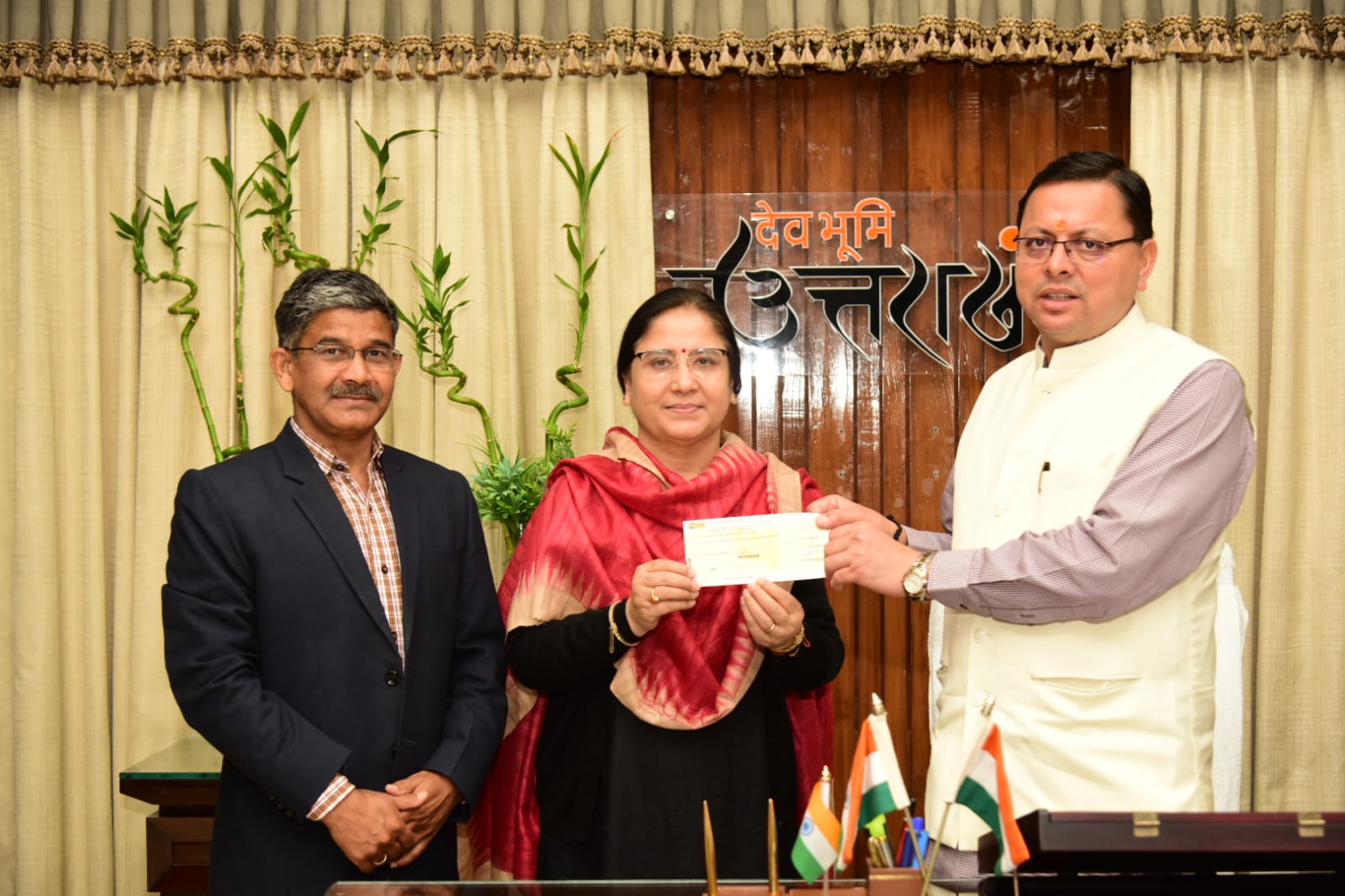 उन्होंने मुख्यमंत्री को जोशीमठ भूधसाव के प्रभावित पीड़ितों की मदद के लिये विश्वविद्यालय के अध्यापको एवं कार्मिकों द्वारा दिये गये अपने एक दिन के वेतन की कुल रू0 1,91,350 (एक लाख इक्यानबे हजार तीन सौ पचास रुपए) की धनराशि का चेक सौंपा।