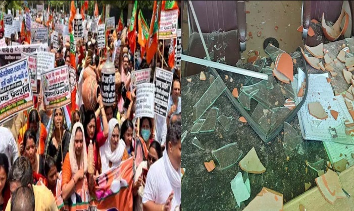 देश की राजधानी दिल्ली में बीते कई दिनों से जल संकट बना हुआ है. दिल्ली के कई इलाकों में पानी की जबरदस्त किल्लत से लोग परेशान हैं. दिल्ली में पानी के लिए जबरदस्त मारामारी चल रही है. वहीं, अब जल संकट के बीच राजनीति भी शुरू हो गई है, जहां एक तरफ आम आदमी पार्टी दूसरे राज्यों पर आरोप लगा रही है, तो वहीं भारतीय जनता पार्टी और कांग्रेस लगातार आम आदमी पार्टी पर हमलावर है. दोनों पार्टियों के द्वारा दिल्ली के तमाम अलग-अलग इलाकों में पानी की समस्या को लेकर प्रदर्शन किया जा रहा है. आज रविवार को भारतीय जनता पार्टी के द्वारा दिल्ली के छतरपुर स्थित जल बोर्ड वॉटर फिलिंग प्वाइंट पर मटका फोड़ प्रदर्शन किया गया. इस दौरान प्रदर्शन में शामिल हुई गुस्साई महिलाओं ने दिल्ली जल बोर्ड के ऑफिस पर पथराव कर दिया जल बोर्ड के ऑफिस के तमाम शीशे को तोड़ दिया गया. इस घटनाक्रम के समय दिल्ली पुलिस भी मौके पर नजर आई. हालांकि अब दिल्ली पुलिस पूरे मामले की जांच कर रही है.